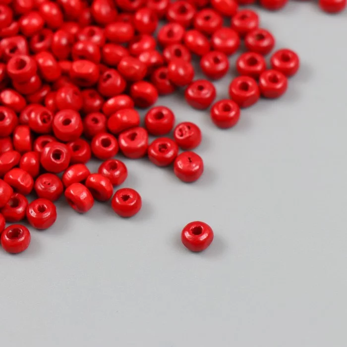 Бусины для творчества дерево "Красные" d=0,4 см набор 20 гр