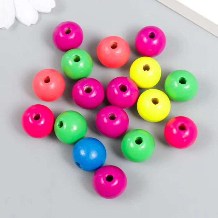 Бусины для творчества дерево "Неоновый микс" d-1,5 см, набор 20 гр 7829685