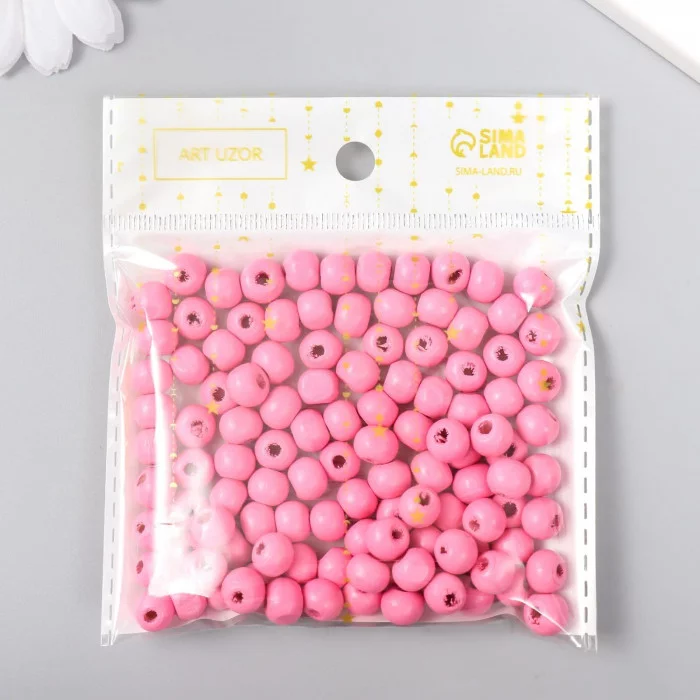 Бусины для творчества дерево "Праздничный розовый" d-0,8 см, набор 20 гр 9463290