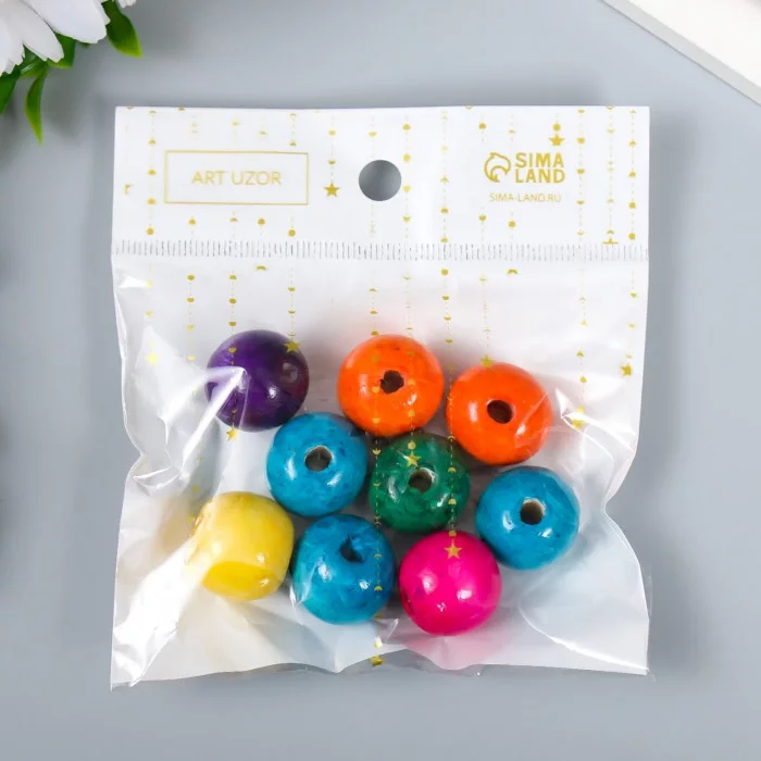 Бусины для творчества дерево "Разноцветные" набор 20 гр 2х2х2 см 5478530