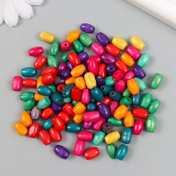 Бусины для творчества дерево "Разноцветные рисинки" 0,6х0,6х1 см набор 20 гр
