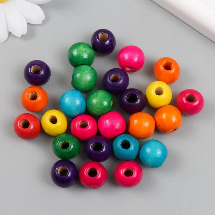 Бусины для творчества дерево "Шарики цветные неон" набор 30 шт d=1,4 см 5019658