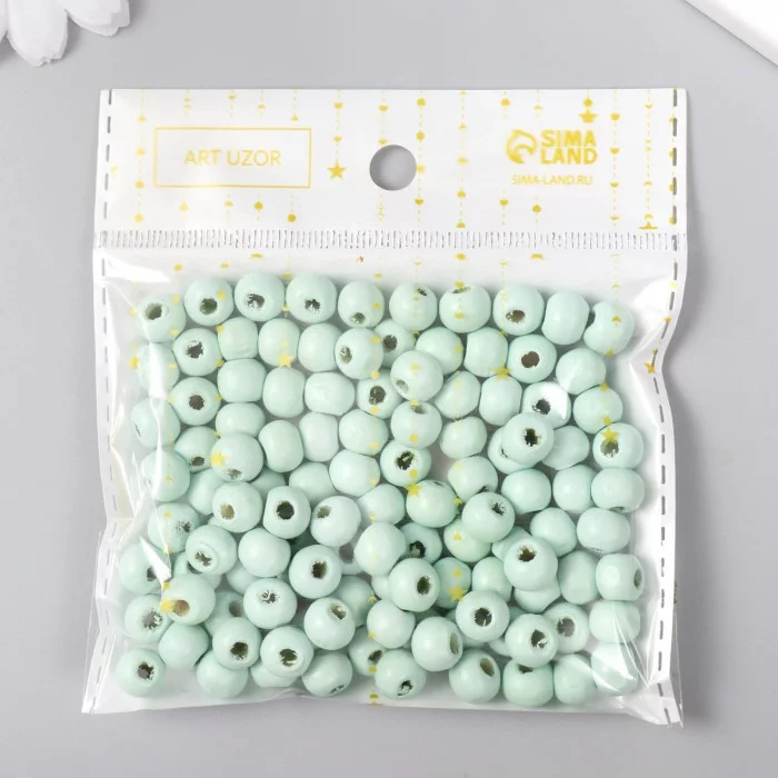 Бусины для творчества дерево "Светло-бирюзовый" d-0,8 см, набор 20 гр 9463299