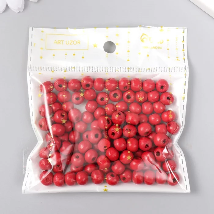 Бусины для творчества дерево "Яркий красный" d-0, 8 см, набор 20 гр 9463292