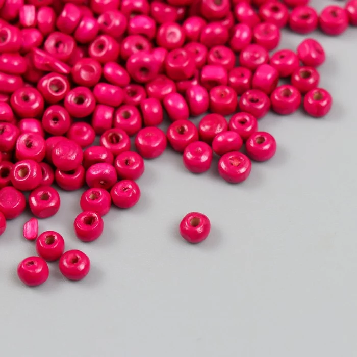 Бусины для творчества дерево "Ярко-розовые" d=0,4 см набор 20 гр