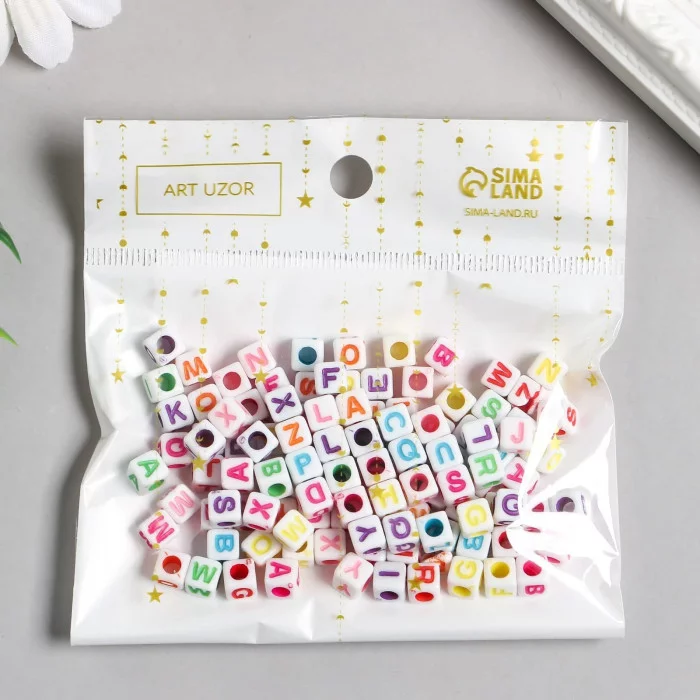 Бусины для творчества пластик "Английские буквы на кубике" цветные набор 20 гр 0,5х0,5х0,5 см7811520