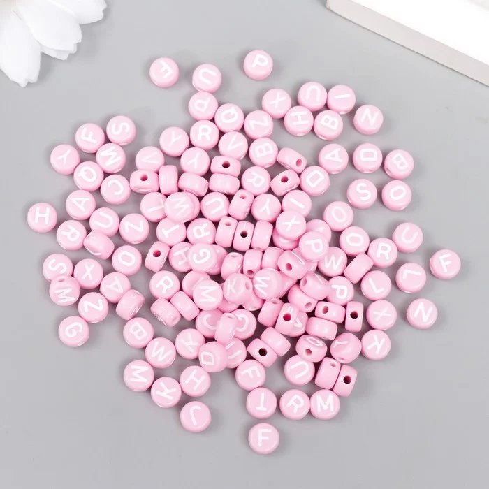 Бусины для творчества пластик "Английские буквы" розовые набор 20 гр 0, 4х0, 7х0, 7 см 7811529