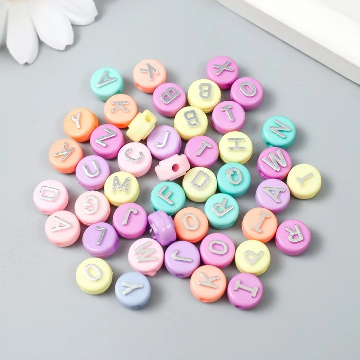 Бусины для творчества пластик "Английские буквы серебро" разноцвет набор 15 гр 0,6х1х1 см 9233579