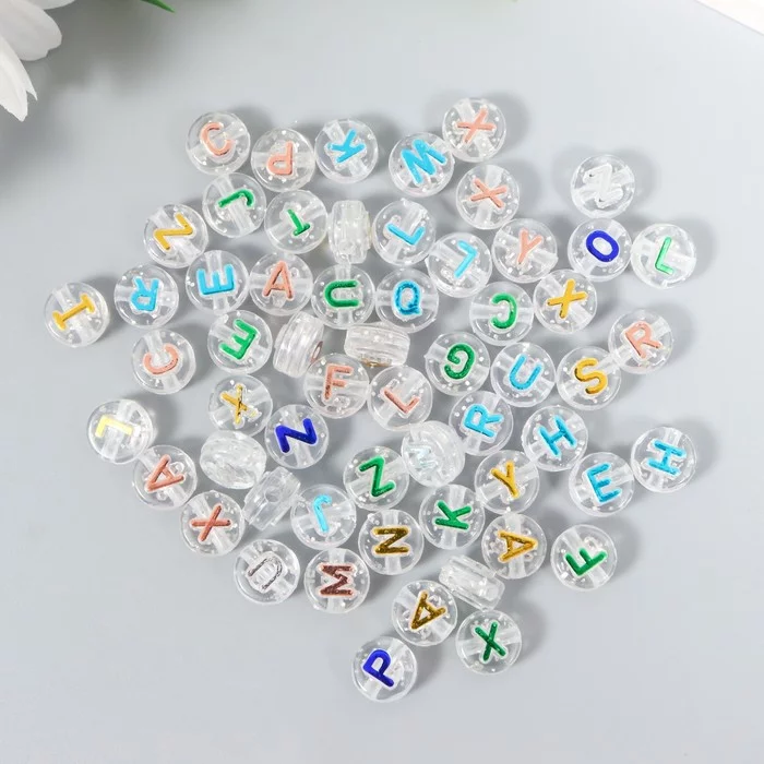 Бусины для творчества пластик "Английские цветные буквы" прозрачные набор 20 гр 0,6х1х1 см