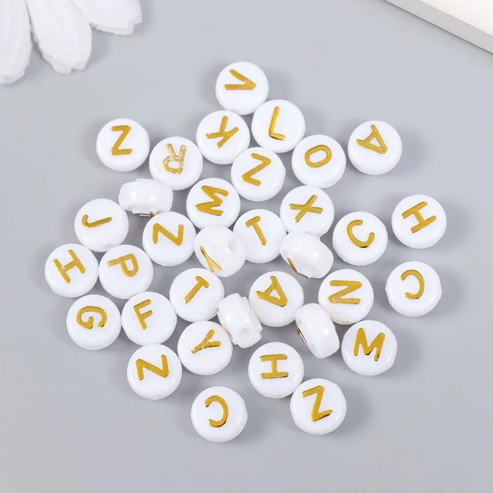 Бусины для творчества пластик "Белые кружочки с золотыми буквами" набор 10 гр 0,6х1х1 см 4645635