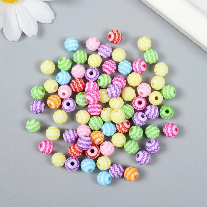 Бусины для творчества пластик "Этно рисунок" цветные набор 25 гр 0,8х0,8х0,8 см