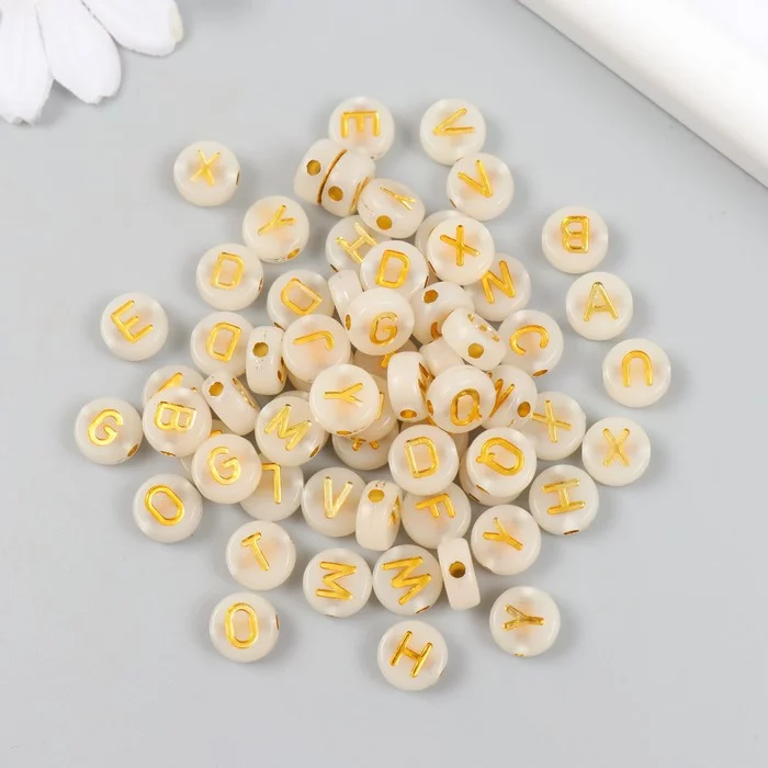 Бусины для творчества пластик фосфорные "Золотой англ. алфавит" набор 20 гр 0,4х1х1 см 9896271