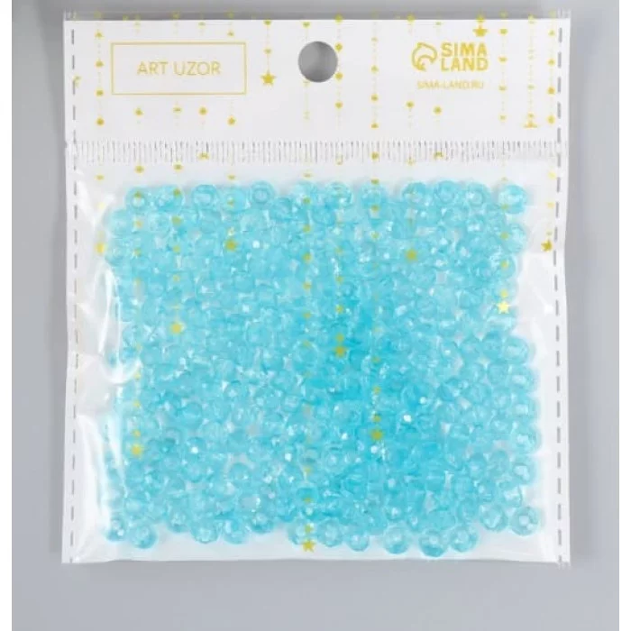 Бусины для творчества пластик "Кристалл с гранями голубой" набор 20 гр 0, 4х0, 6х0, 6 см 5131768