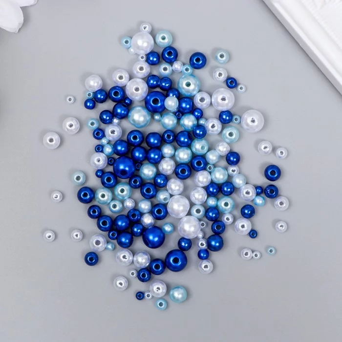 Бусины для творчества пластик "Круглые. Ассорти синее" d=3-8 мм, набор 10 гр 7459630
