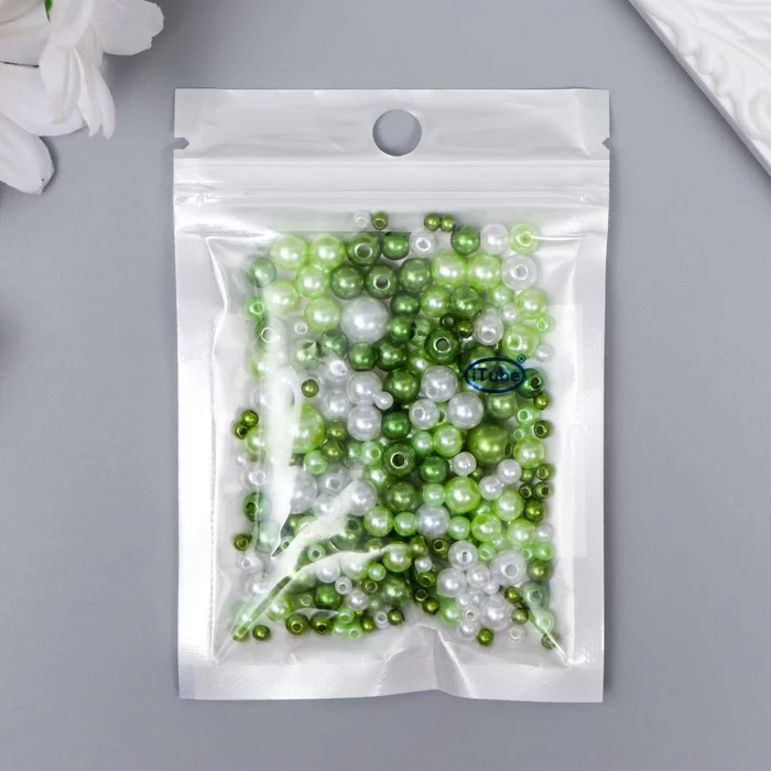 Бусины для творчества пластик "Круглые. Ассорти зелёное" d=3-8 мм, набор 10 гр 7459635