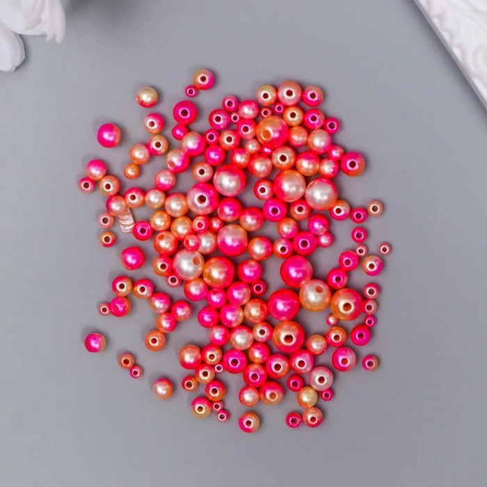Бусины для творчества пластик "Круглые. Градиент. Русалка ярко-розовая" d=3-8мм, набор 10 гр 74595