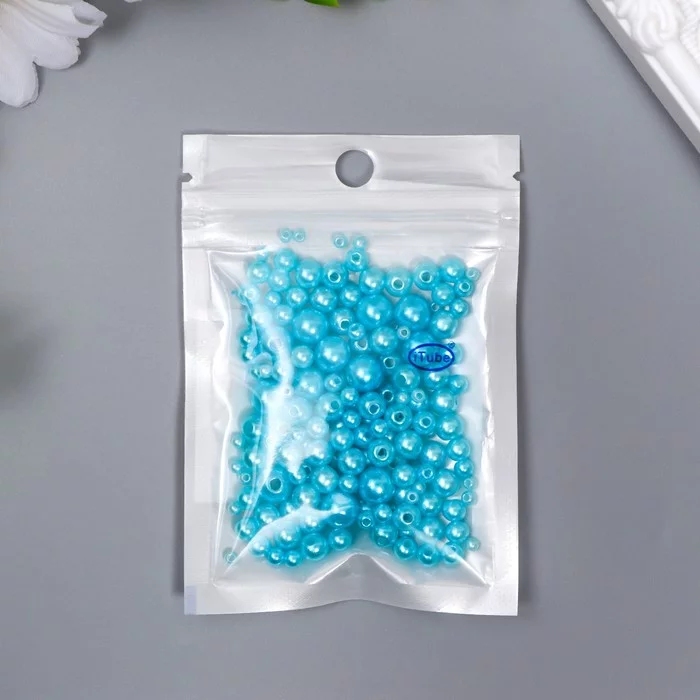 Бусины для творчества пластик "Круглые. Лазурный" d=3-8 мм, набор 10 гр 7459619