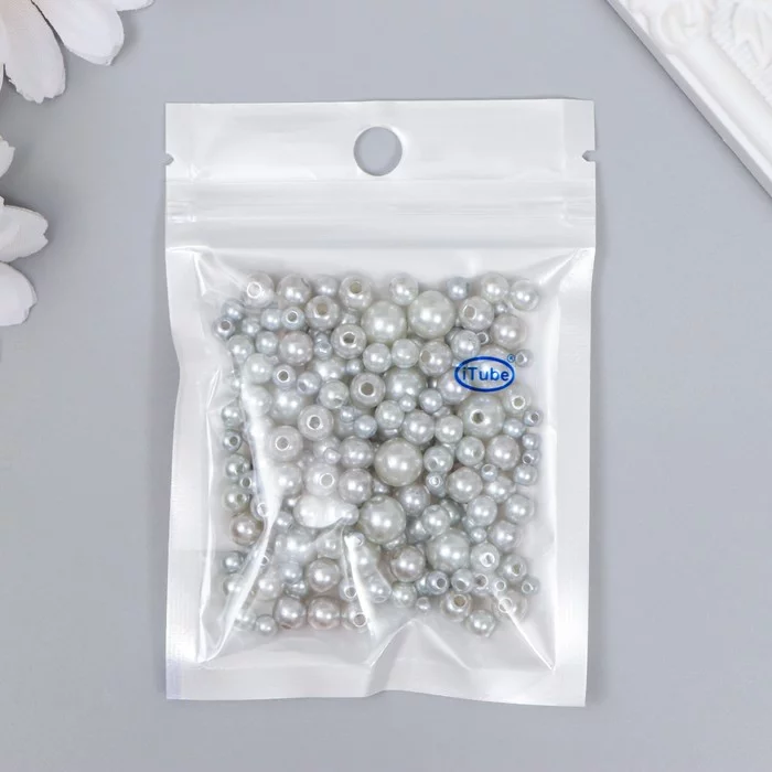 Бусины для творчества пластик "Круглые. Серебро" d=3-8 мм, набор 10 гр 7459628