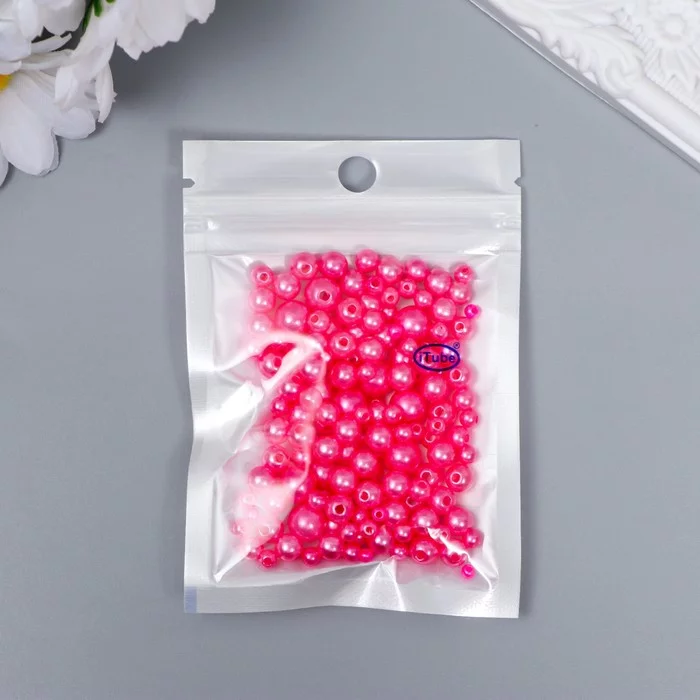 Бусины для творчества пластик "Круглые. Ярко-розовые" d=3-8 мм, набор 10 гр 7459614