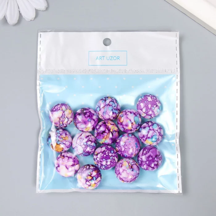 Бусины для творчества пластик "Мраморные. Фиолетовый" набор 15 шт 1,7х1,7х1 см 9285327
