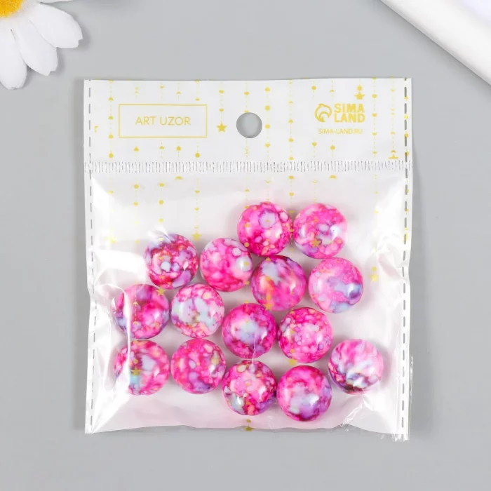 Бусины для творчества пластик "Мраморные. Фуксия" набор 15 шт 1, 7х1, 7х1 см 9285323