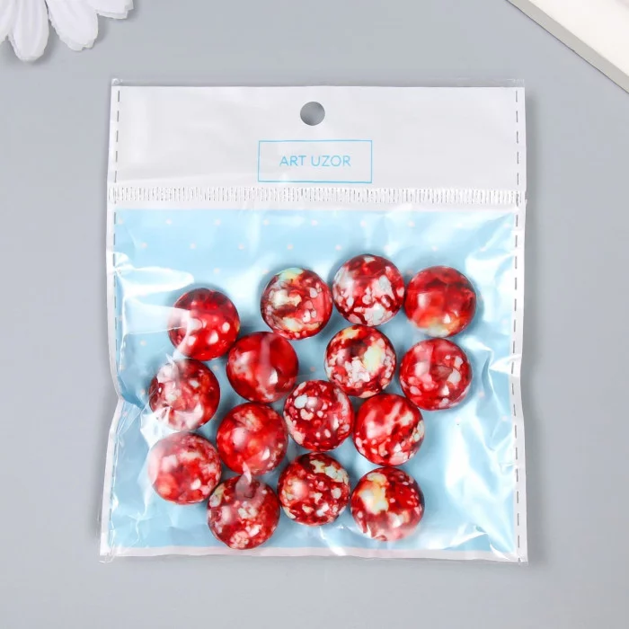 Бусины для творчества пластик "Мраморные. Красный" набор 15 шт 1,7х1,7х1 см 9285330