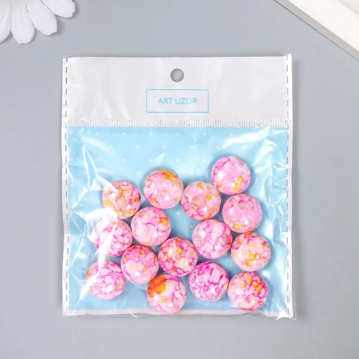 Бусины для творчества пластик "Мраморные. Розовый" набор 15 шт 1,7х1,7х1 см 9285325