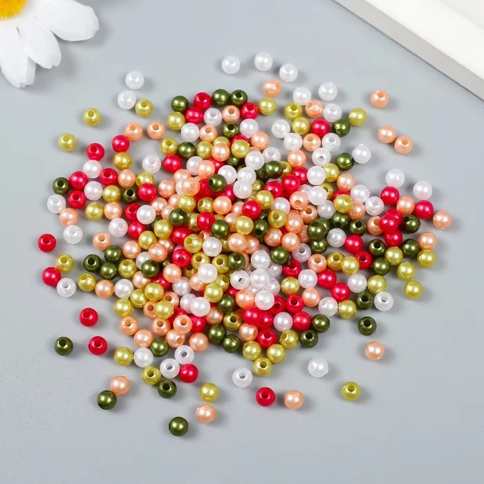 Бусины для творчества пластик "Новогодние цвета" набор 20 гр d=0,5 см