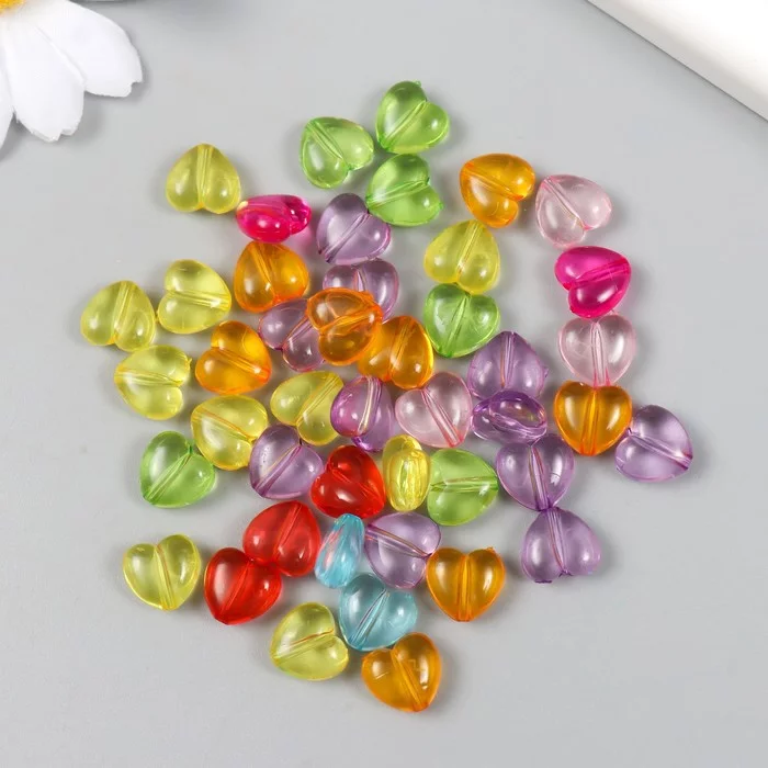 Бусины для творчества пластик "Пухлые сердца" прозрачные цветные набор 20 гр 0, 6х1х1 см 9608706