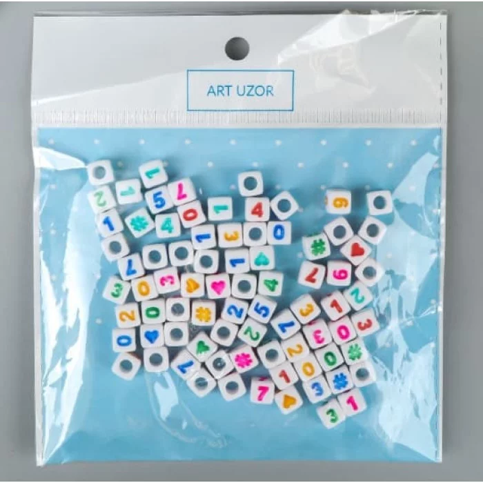 Бусины для творчества пластик "Циферки на кубике" белые набор 20 гр 0, 7х0, 7 см 2504827