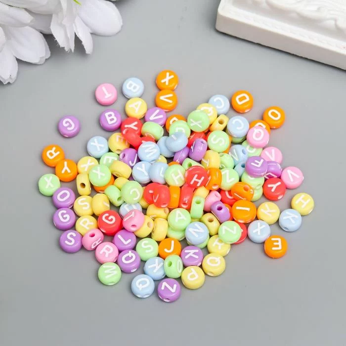 Бусины для творчества пластик "Яркие кружочки с буквами" набор 20 гр 0,4х0,7х0,7 см
