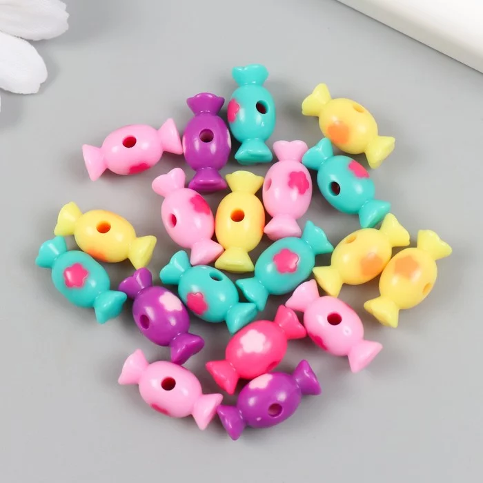 Бусины пластик "Конфетка с сердечком" глянец МИКС 2х1,4х1,4 см набор 20 гр 9888444
