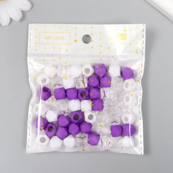 Бусины пластик "Кристалл многогранник. Фиолет, белый, прозрачный" набор 30 гр 1х1х1 см 9468739