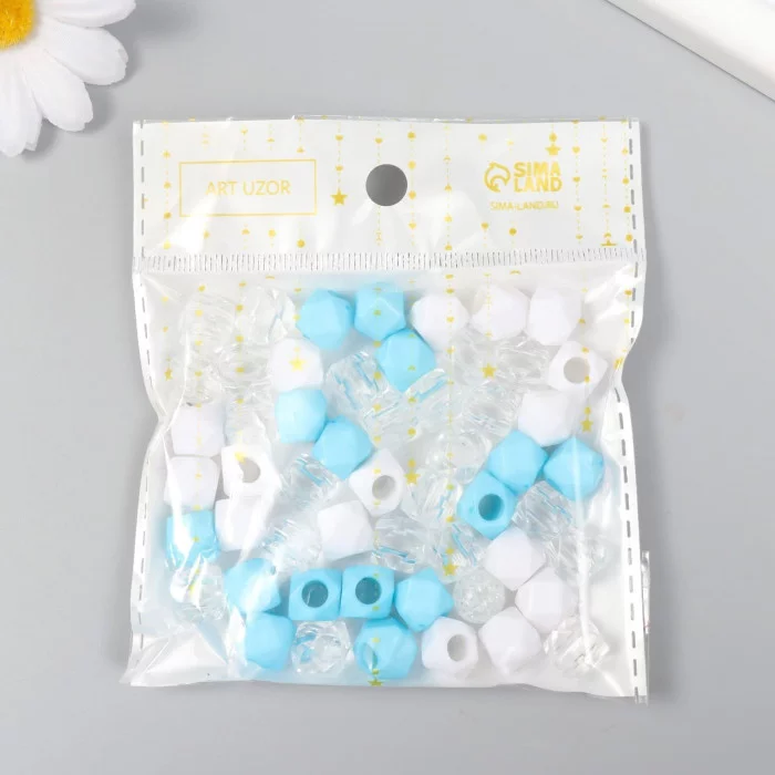 Бусины пластик "Кристалл многогранник. Голубой, белый, прозрачный" набор 30 гр 1х1х1 см 9468744