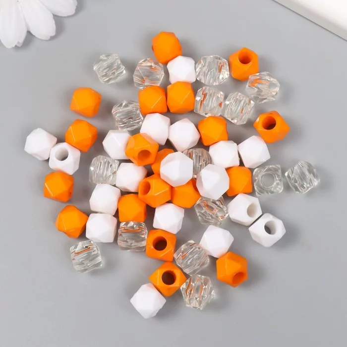 Бусины пластик "Кристалл многогранник. Оранж, белый, прозрачный" набор 30 гр 1х1х1 см 9468741