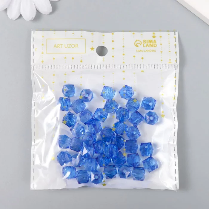 Бусины пластик "Кристалл многогранник. Синяя пыль" прозрачный набор 20 гр 1х1х1 см 9431082