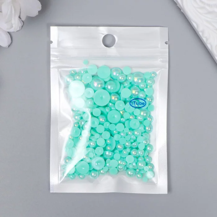 Декор для творчества пластик "Половинки бусин. Зелёный перламутр" d=3-10 мм, набор 10 гр 7459603