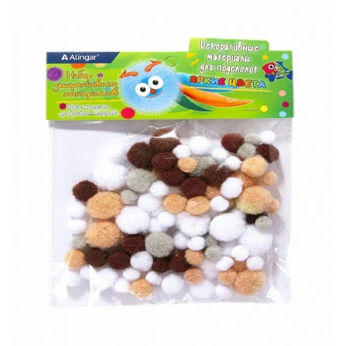 Декоративный материал Alingar "Пушистые помпоны", 80 шт, микс, пакет с европодвесом 89317