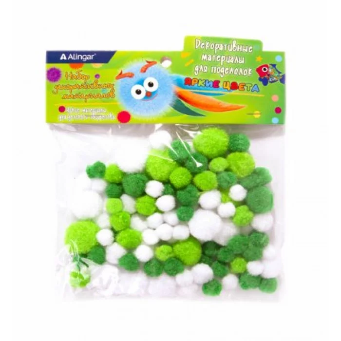 Декоративный материал Alingar "Пушистые помпоны", 80 шт, микс, пакет с европодвесом AL9037