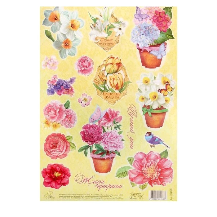 Декупажная карта "Летние цветы", 21 х29,7 см 1002630