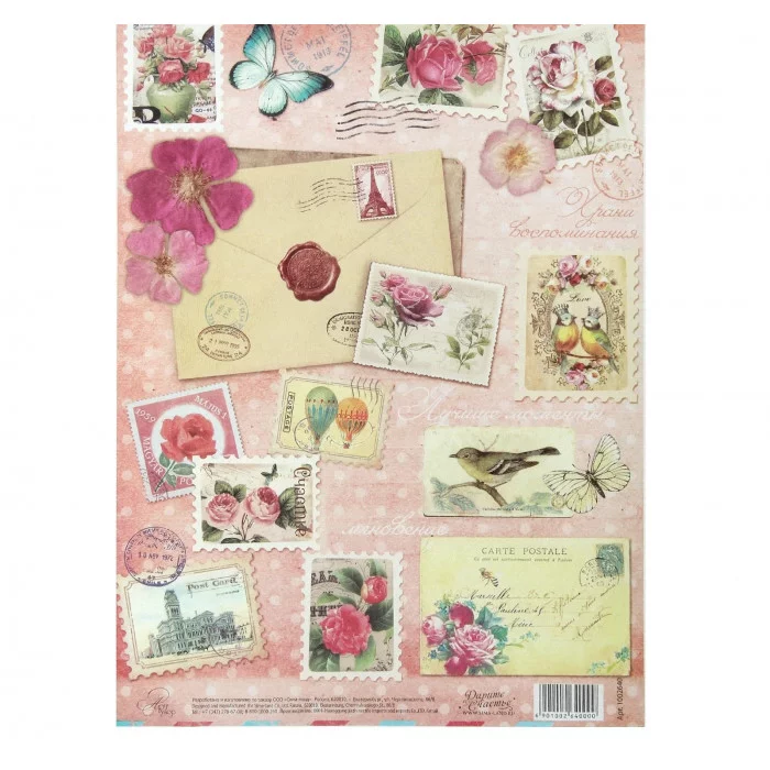Создавайте шедевры своими руками! Декупажная карта "Почта", 21 х 29,7 см — это тончайшая рисовая бумага плотностью 40 г/м². С ней можно быстро, просто и стильно украсить любые предметы интерьера, сувениры или подарки, сделав их по-настоящему оригинальными и эксклюзивными. Она отлично подойдёт для декупажа как больших, так и маленьких поверхностей, сохранив при этом свой насыщенный цвет. Дополнительно вам понадобятся только ножницы, кисть и клей (обычный ПВА или специальный для декупажа). Каждый лист аккуратно упакован в индивидуальный пакет с европетлёй, поэтому не повредится при перевозке и хранении.