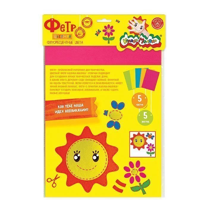 Фетр цветной флюоресцентный 5цв в пакете с хедером, европодвес 5 пр. А4 190258