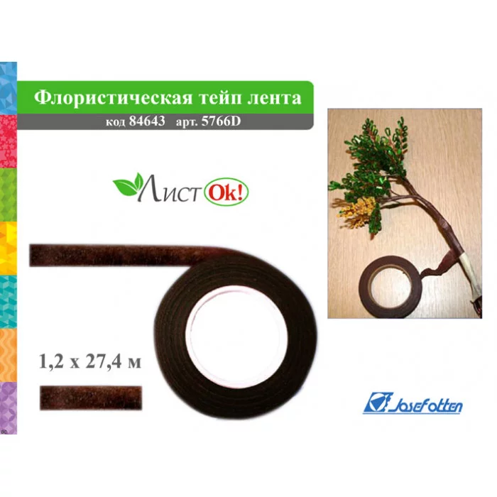 Флористическая лента цвет КОРИЧНЕВЫЙ, 1, 2смх27, 4м 5766-4D J.Otten 84643