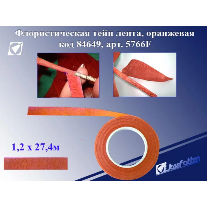 Флористическая лента цвет ОРАНЖЕВЫЙ, 1, 2смх27, 4м 5766-6F J.Otten 84649