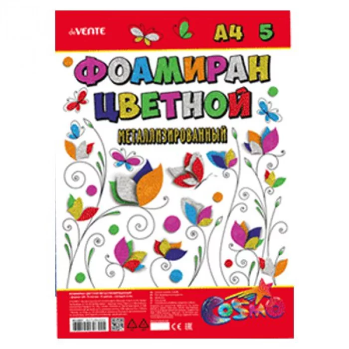 Фоамиран цветной металлизированный А4 толщина 2мм 5 листов 5 цветов в пакете е/п DEVENTE 8013807