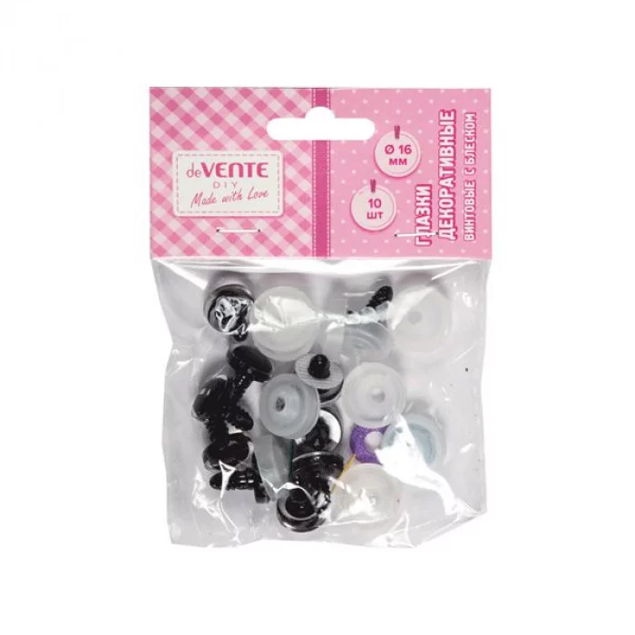 Глазки винтовые с фиксатором круглые черные d16 10шт с блеском е/п DEVENTE 8001331 181564