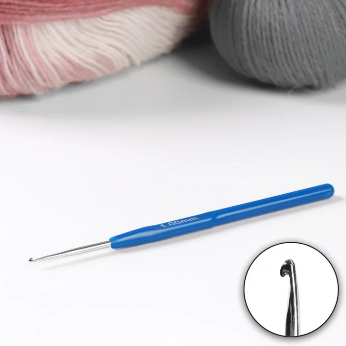 Крючок для вязания сталь пластик ручка (цена за шт) 13, 5см d1, 0мм синий АУ 1161176