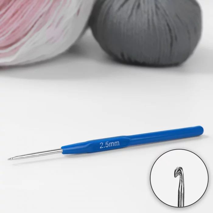 Крючок для вязания сталь пластик ручка (цена за шт) 13,5см d2,5мм синий АУ 744673