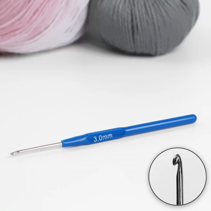 Крючок для вязания сталь пластик ручка (цена за шт) 13, 5см d3, 0мм синий АУ 1161179
