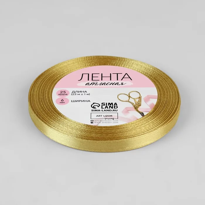 Лента атласная №104 6мм*25±1ярд золотой АУ 1218130